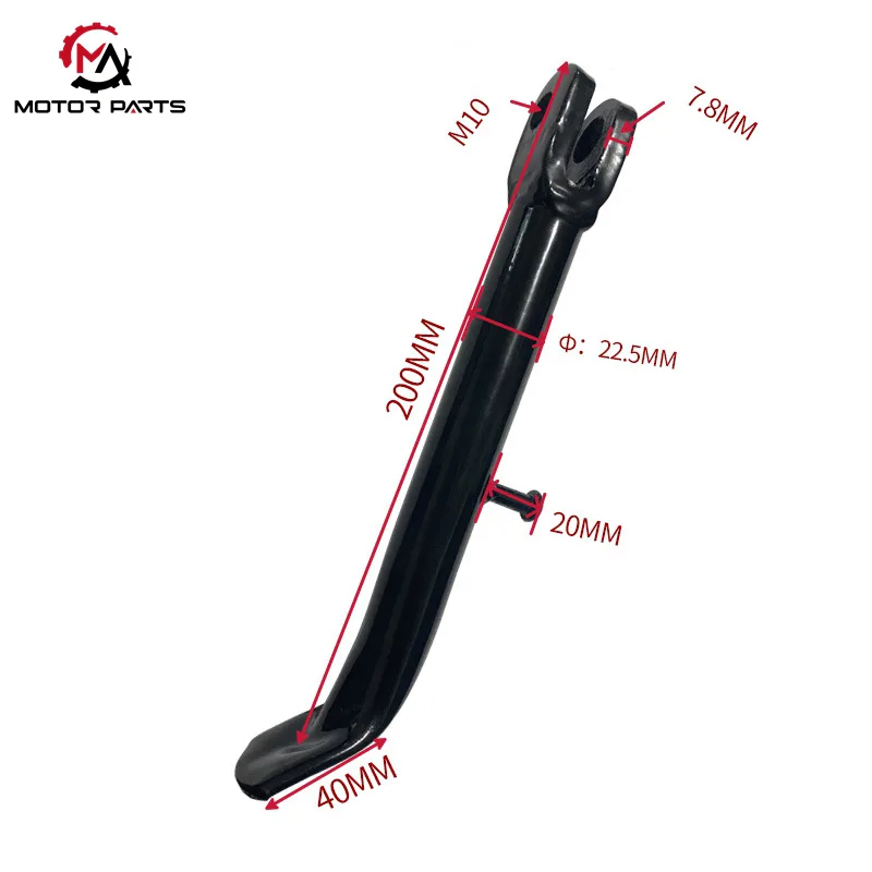 Pé de apoio antiderrapante: A outra extremidade é equipada com um pé de apoio especialmente projetado, apresentando uma superfície plana curva e padrões antiderrapantes em forma de diamante na parte inferior. Este design aumenta efetivamente a área de contato e o atrito com o solo, reduzindo o risco de a motocicleta escorregar quando estacionada.
