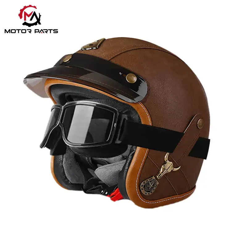 O capacete de couro de meio rosto para motocicleta personalizável com óculos é um produto clássico de meio capacete da Max Trading na China, projetado para passeios urbanos e entusiastas de motocicletas vintage.