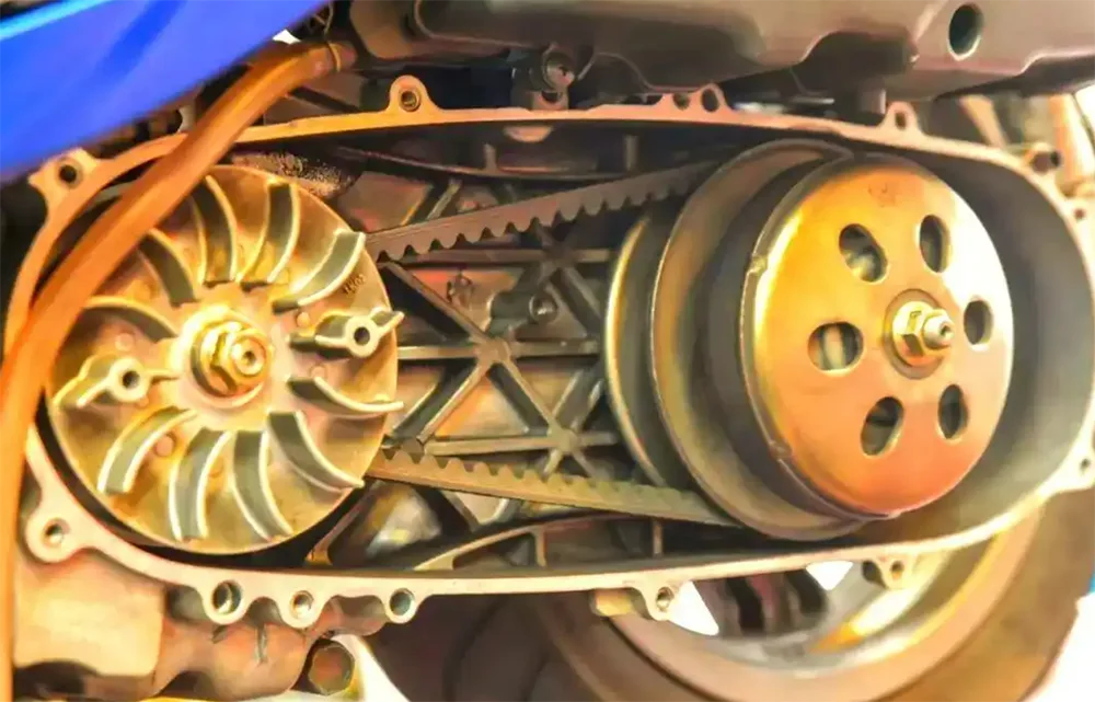 A combinação de uma correia e uma polia pode transmitir potência de forma eficaz e também permitir velocidade variável. Usado para transmitir mudanças de potência e velocidade, pode garantir uma transmissão de potência estável, mas sua eficiência é ligeiramente inferior à de um sistema de corrente. Este sistema de transmissão é bastante famoso pela sua boa flexibilidade e transmissão de potência suave.