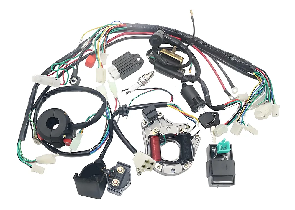 Pense nisso como o cérebro e os nervos da sua motocicleta - controlando a potência, a faísca, as luzes e todas as suas informações vitais. Ele começa com a bateria, o estator (ou o magneto em passeios mais antigos) e o motor de partida que fazem as coisas girarem. A ignição depende de peças como a vela de ignição e (em bicicletas mais antigas) o distribuidor. Toda a iluminação LED (faróis, piscas), buzina, velocímetro, tacômetro e hodômetro rastreando suas milhas. Sensores e relés críticos sussurram para o cérebro, enquanto o chicote elétrico serpenteia pela estrutura que conecta tudo. Se precisar de volts, produzir luz, criar faíscas ou mostrar dados, ele estará conectado a este sistema.