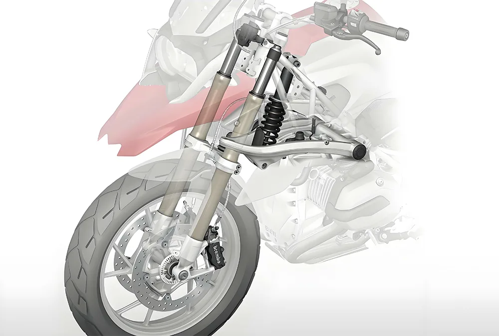Este é o esqueleto e a suspensão da sua motocicleta. Tudo começa com o quadro e o pára-lama. O garfo dianteiro e o sistema de suspensão (incluindo componentes do amortecedor) suportam solavancos. Sua conexão com a estrada se dá por meio da roda, do cubo, do aro e do pneu. Os acessórios funcionais e de proteção, por ex. trava anti-roubo, proteção contra choques/choque, espelho retrovisor, caixa de armazenamento, moldura de proteção (proteções do motor/barras de colisão), suporte e pára-brisa, até mesmo acessórios decorativos que são montados no chassi.